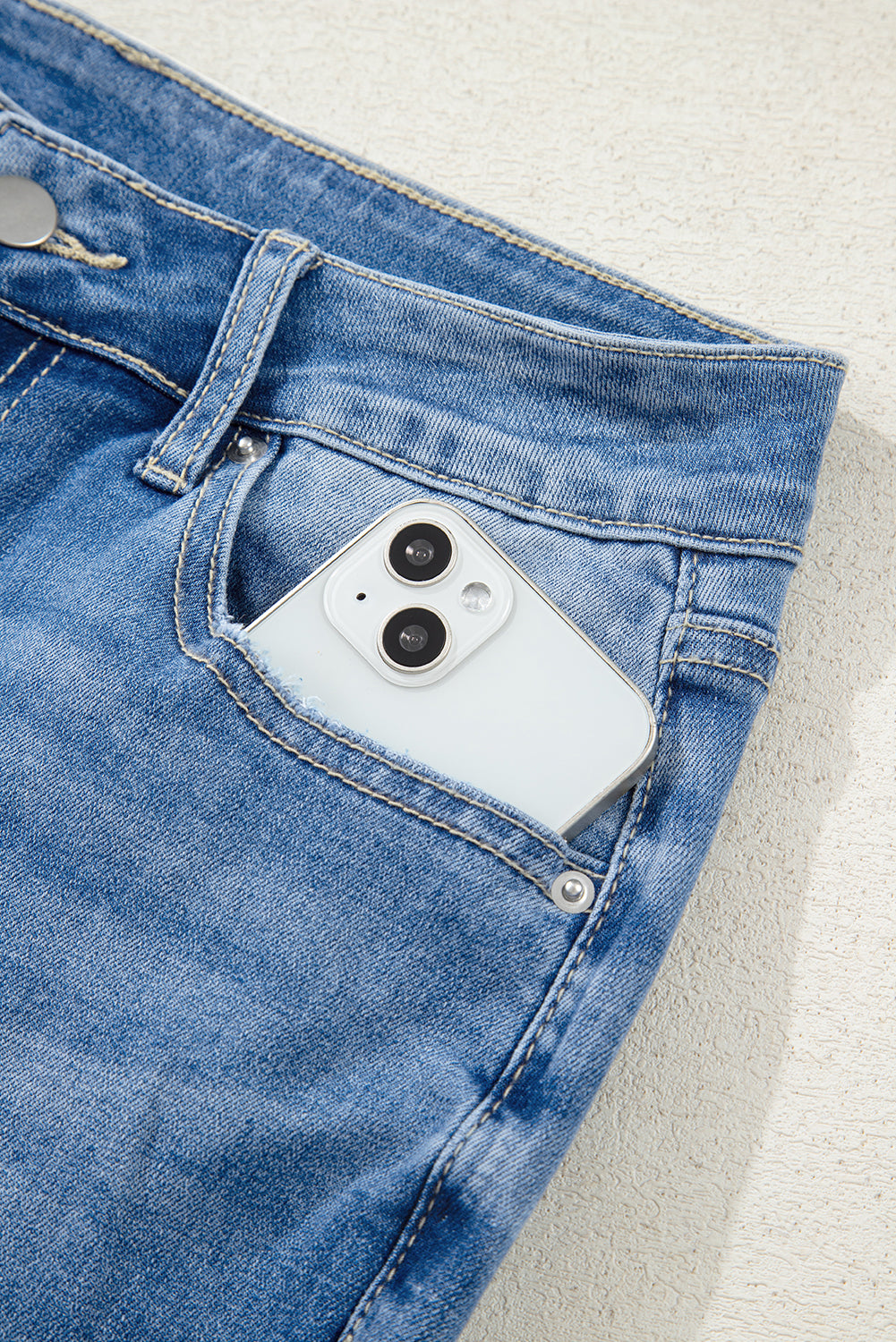 Soft stretch denim keeps these cut out jeans comfy all day.